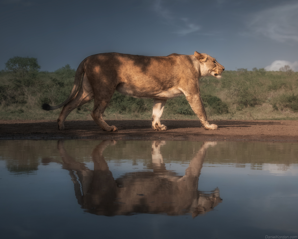 Today we focus on patient, prolonged hide sessions and night-aware shooting; Shompole’s hide system was created specifically to allow extended, low-angle portraiture and low-light work, so we practise long-burst techniques, backlit rim-lighting and subtle lighting control while remaining respectful of animal behaviour and conservation rules. We stay at the hide from sunset to sunrise – there are beds and food inside and it is very comfortable, and many animals will come overnight to drink from the waterhole.