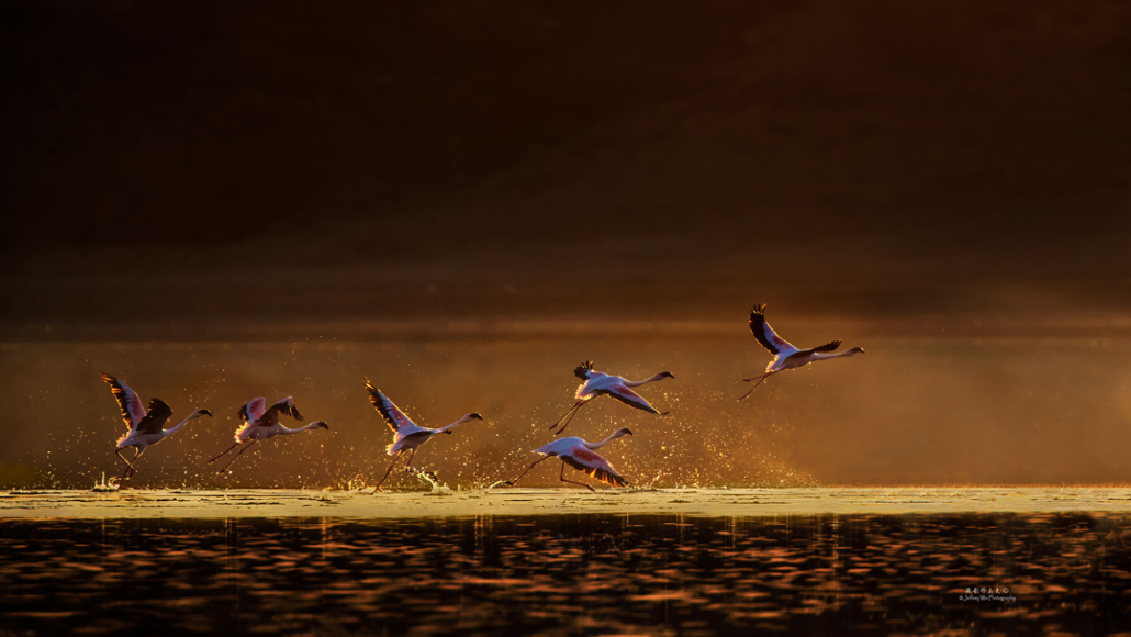 This day is all about creative variation: backlight and silhouette experiments from the hide, a short heli sortie for those who opt in, and a lakeside golden-hour session to capture colour, texture and the great pink flocks at first and last light; and of course signature photography in the hide!