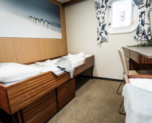 Warm hospitality sets the tone as you savour freshly prepared, delicious dishes in an intimate setting. Whether you’re enjoying a hearty breakfast before a day of exploring or sharing bottles of wine over supper with your fellow explorers, every meal on board Polar Athena feels like a dinner party.