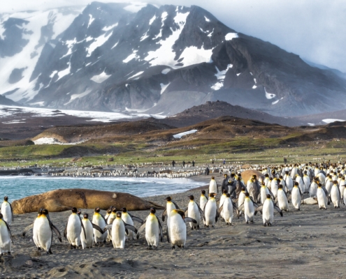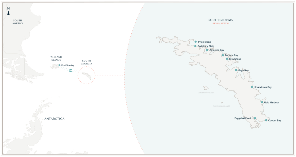 South Georgia is home to some of the world’s most spectacular wildlife and rugged landscapes. Each day, we’ll make Zodiac landings to explore its dramatic coastline and thriving colonies. With over 450,000 king penguins, the island boasts some of the planet’s greatest concentrations. Flexible scheduling allows us to visit iconic sites such as St Andrew’s Bay, Salisbury Plain, and Gold Harbour—at the very best times for photography.