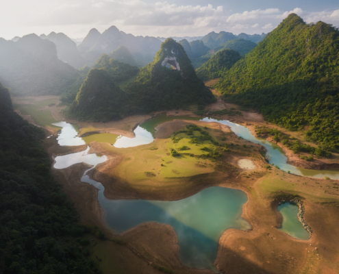 We return to Ban Gioc before dawn to capture the waterfall in soft morning light, when cool tones, drifting mist, and calmer conditions create a completely different mood from sunset. After breakfast, we visit Phat Tich Truc Lam Pagoda, positioned on a hillside overlooking the border valley, where traditional temple architecture contrasts beautifully with the surrounding karst landscape and patchwork rice fields below. In the afternoon we explore Phong Nam Valley, a quiet agricultural region inhabited by Tay and Nung communities whose livelihoods revolve around rice cultivation and small-scale farming. At sunset, farmers, grazing livestock, and smoke from cooking fires often add subtle human elements to the vast landscape, creating strong storytelling opportunities within a natural environment. We stay again at Ban Gioc Saigon Hotel.