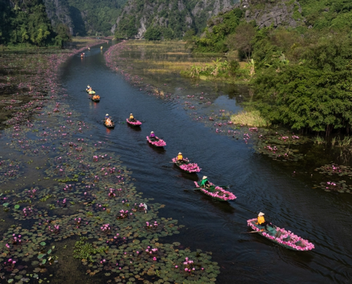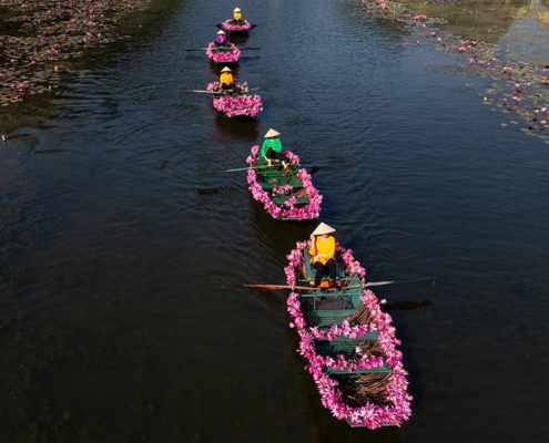 We begin the day before sunrise, heading out to capture the delicate beauty of Ninh Binh blooming waterlilies in the soft morning light. After spending time photographing this serene scene, we return to the hotel for a well-earned breakfast and some rest.